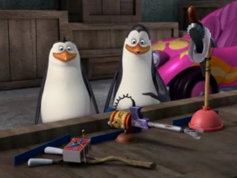 | P.E.S.T.E. | 110 | Bomba de olor en forma de inodoro diseñada para atrapar al sujeto que se siente en ella hasta que la bomba explote. Fue específicamente hecha para usarla con el Doctor Espiráculo. | Éxito. Aunque fue Julien quien quedó atrapado. Los pingüinos no la usaron con el Doctor Espiráculo al descubrir que "los delfines no usan inodoros" y quedó guardada por mucho tiempo. |